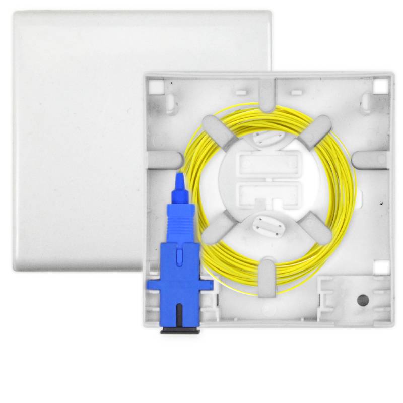 Оптические настенные розетки предназначены для вывода кабеля из стены и подключения к нему различного оконечного оборудования. Также может быть использована как небольшой настенный кросс. Корпус розетки изготовлен из качественного пластика белого цвета. Внутри предусмотрено место для укладки запаса кабеля и два посадочных места под одинарные адаптеры SC или двойные LC. Ввод кабеля осуществляется через отверстие в днище розетки, либо один из разъемов.