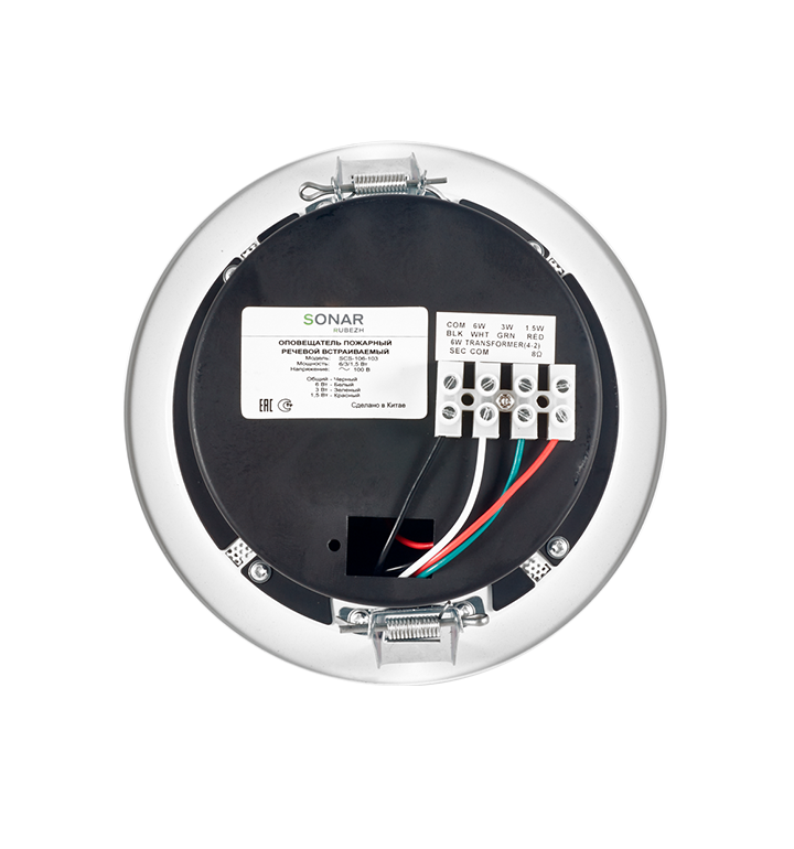 Оповещатель пожарный речевой встраиваемый Sonar SCS-06-03 предназначен для: