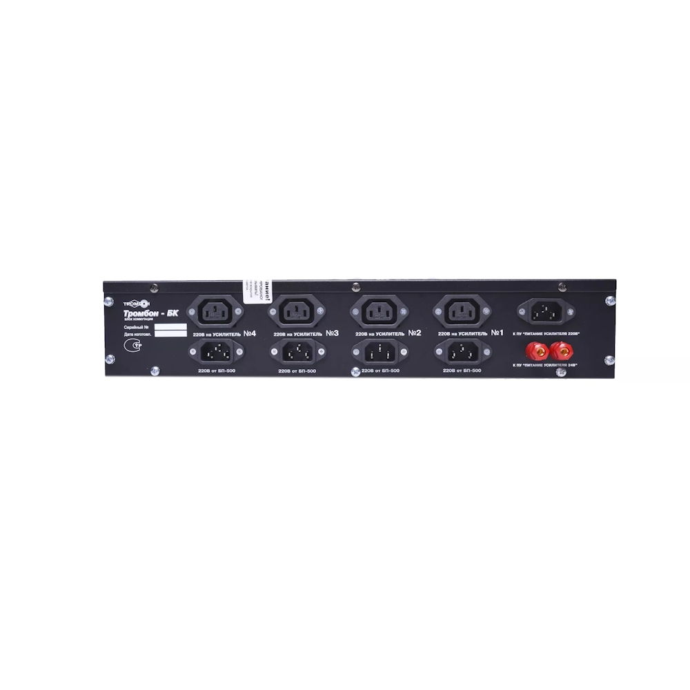 Блок коммутации «Тромбон БК» предназначен для коммутации питающего напряжения ~220В 50 Гц на 4 усилителях мощности «Тромбон УМ». Прибор соответствует техническим условиям ТУ 4371-001-88310620-08 и нормативным документам: Своду правил 3.13130.2009 и ГОСТ Р 53325-2012.