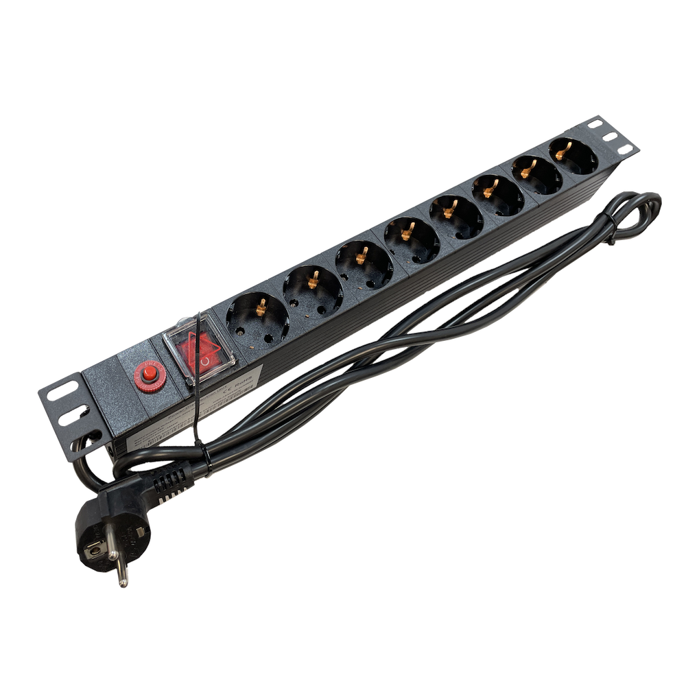 SIT-PDU08-EU Профессиональный блок розеток для организации электропитания оборудования в телекоммуникационных стойках. Модель стандарта 1U оснащена 8 розетками европейского стандарта (EU) с номинальны