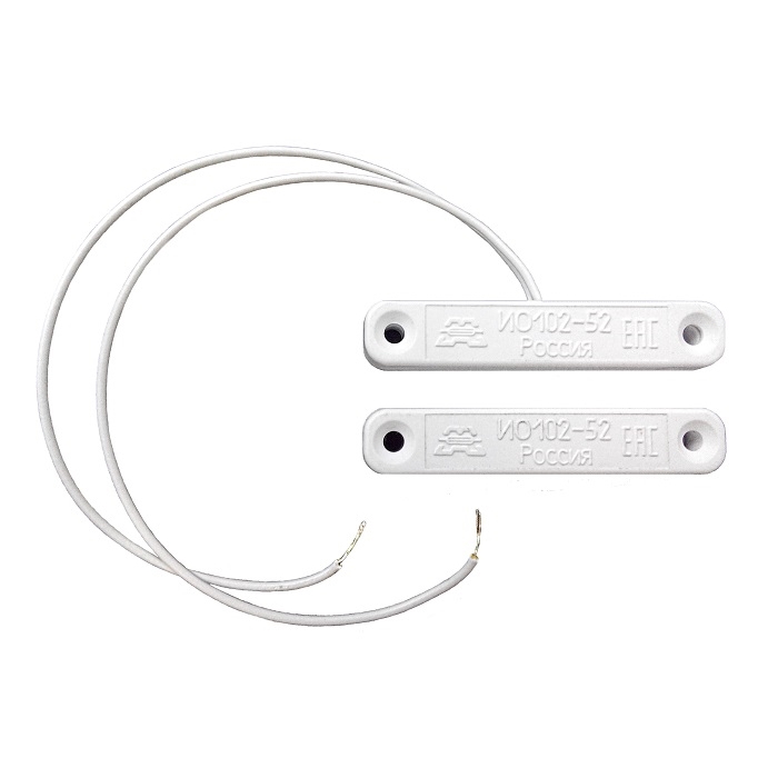 ИО 102-52 (СМК-1) Магнитоконтактный контакты размыкаются при тревоге, 10 мм (контакты замкнуты), 45 мм (контакты разомкнуты) U-коммут.50 В, I-коммут.50 мА, P-коммут.10 Вт t-раб.-50+50°С, 57х11х11 мм (