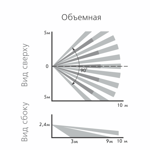 угол зоны обнаружения в горизонтальной плоскости 90°