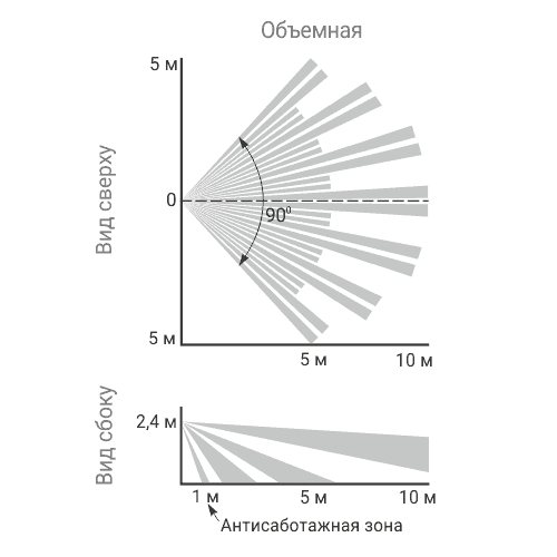 угол зоны обнаружения в горизонтальной плоскости 90°