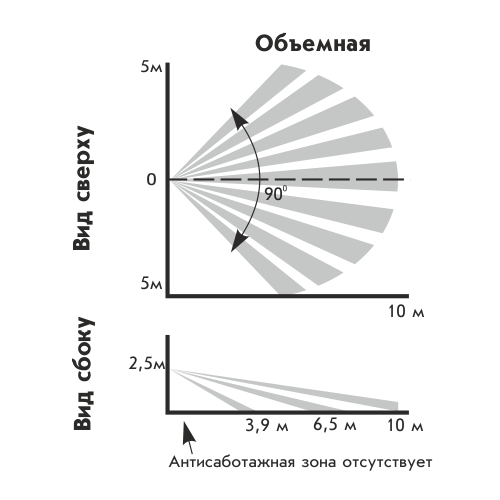 • объемная зона обнаружения (линза — «стандарт»);