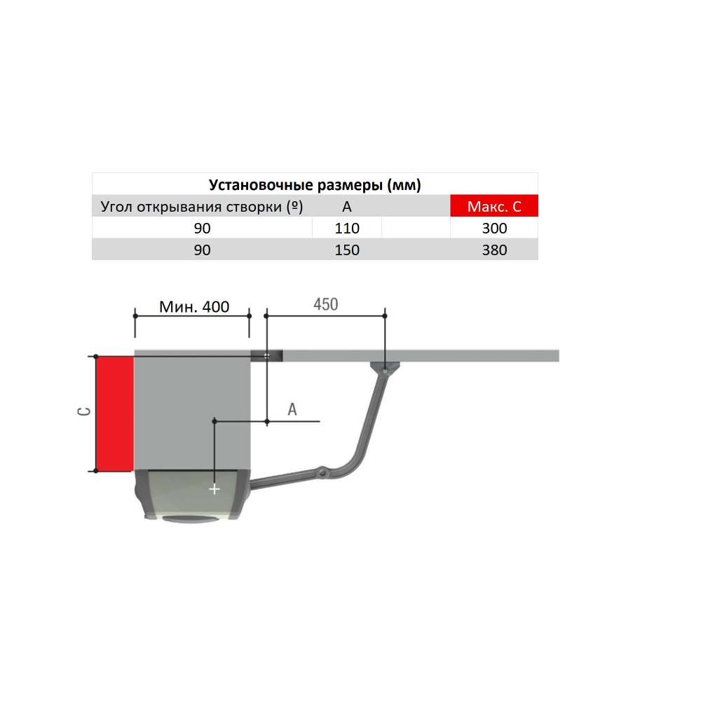 Макс. значение «С» (мм) 380