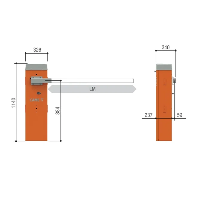 • GLT40AOS — Тумба шлагбаума из оцинкованной и окрашенной стали с возможностью установки дополнительных принадлежностей для проездов до 4 м