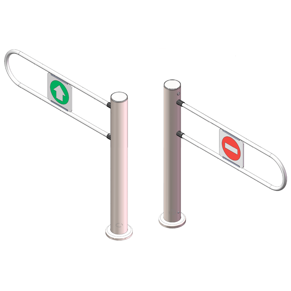 Турникет-калитка позволяет организовать входную группу с возможностью подключения с СКУД и разблокировкой с помощью пульта. Имеет световую индикацию на верхней части стойки, возможна блокировка с открытом состоянии и блокировка открытия в одну сторону.