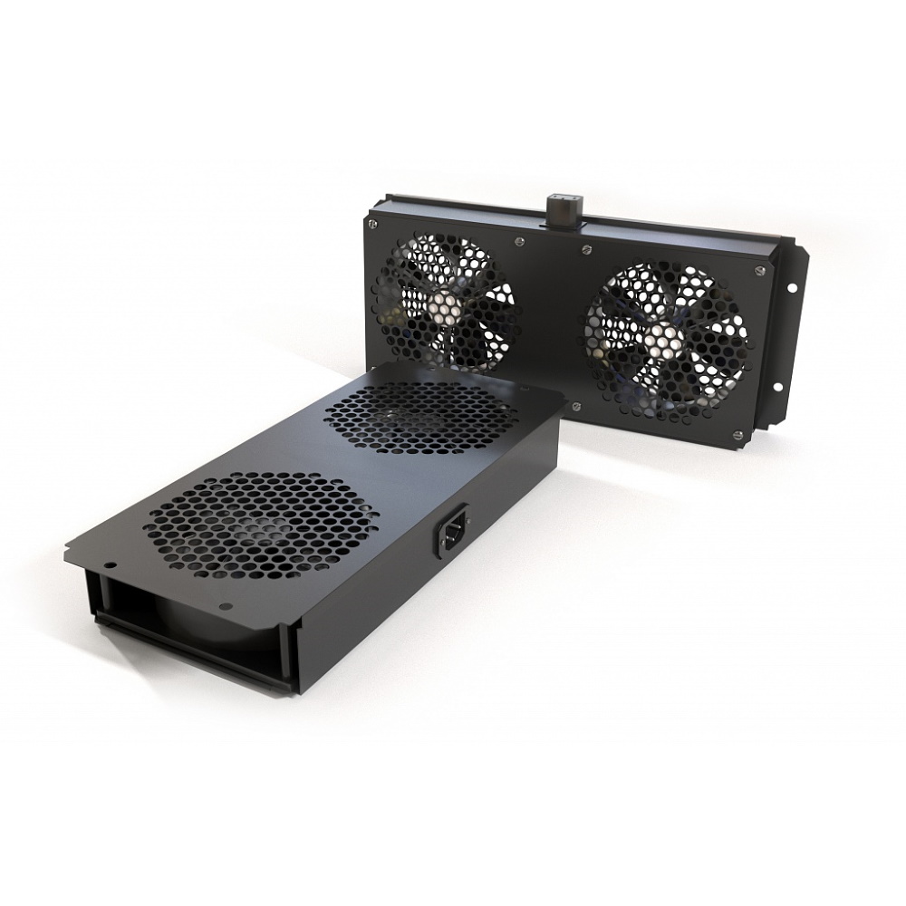 Hyperline TFAB-T2FR-RAL9004 Модуль вентиляторный потолочный с 2-мя вентиляторами для установки в шкафы серий TTB, TTR, TWB, TWL, с подшипниками и крепежным элементами, без кабеля питания, цвет черный (RAL 9004SN)