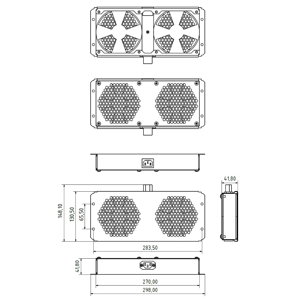 Модуль вентиляторный с двумя вентиляторами серии TFAB-T2FR предназначен для установки в 19-дюймовые монтажные конструктивы, такие как телекоммуникационные/серверные шкафы напольного или настенного варианта монтажа. Используется для установки в подготовленные отверстия в крыше или в основании шкафа в соответствии с таблицей совместимости; устанавливается после удаления выламываемых заглушек или вместо штатных фальшпанелей-заглушек; крепление производится четырьмя винтами. Изделие может также устанавливаться в другие места, подготовленные согласно размерам вентиляторного модуля, где требуется организовать вентиляцию оборудования.