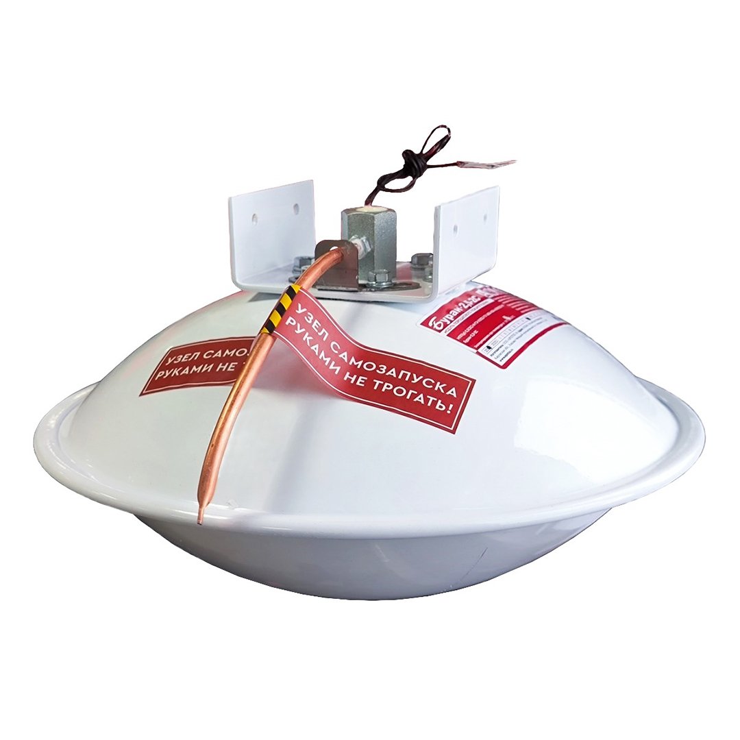 Буран2,52С импульсный самосрабатывающий модуль порошкового пожаротушения. Функция самосрабатывания реализована при помощи выносного теплопроводного шнура, воспламеняющегося во время пожара и приводящего в действие модуль. Самосрабатывание происходит при повышении температуры в зоне установки до +180°С. Для построения автономной системы допускается также использовать сигнально-пусковые устройства (УСП).