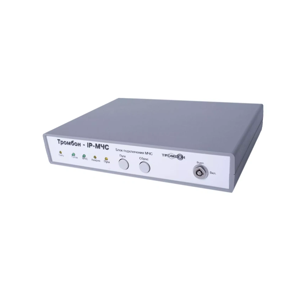 Тромбон IP-МЧС Модуль сопряжения с каналами связи МЧС. Предназначен для стыковки системы звукового вещания Тромбон IР с блоками централизованного запуска каналов связи МЧС. В частности с прибором РАСЦО — П166Ц-БУУ-02, БРУ-М и др. Блок «Тромбон IP-МЧС» принимает аналоговые сигналы управления и голосовые сообщения, преобразует их в цифровой формат и передает в систему звукового вещания Тромбон IР.