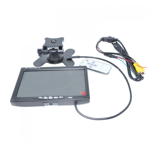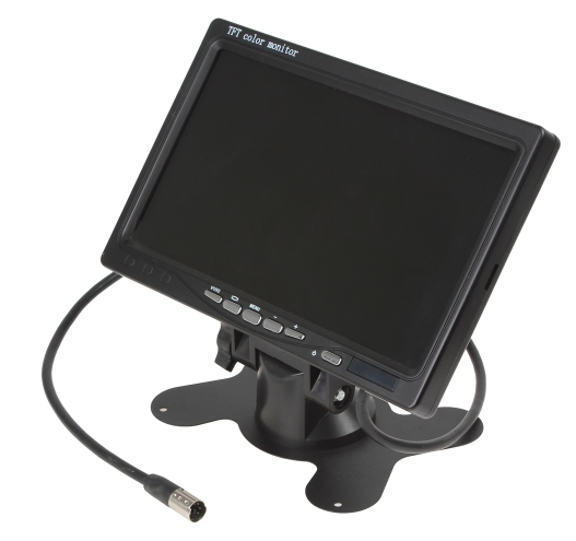 Монитор NSCAR 7.0 для установки на транспорте. Размер экрана 7″. В комплекте кронштейн-ножка, пульт и соединительный провод для регистратора. Питание 12В.