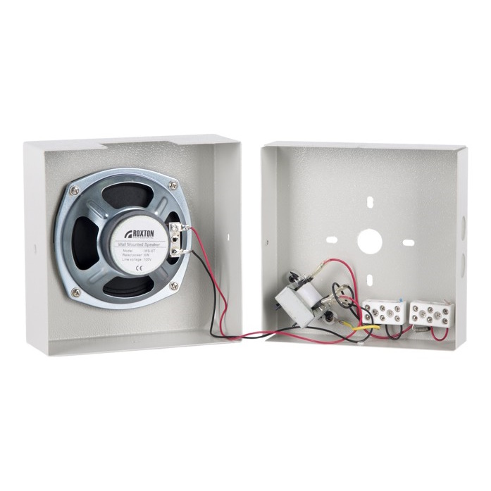 Настенный громкоговоритель ROXTON WS-06T мощностью 6 Вт сочетает в себе хорошие акустические характеристики и удобство монтажа, что делает его незаменимым при построении систем речевого оповещения и музыкальной трансляции холлов, коридоров, торговых залов, офисных и учебных помещений. Имея настенный способ крепления, ROXTON WS-06T характеризуется способом излучения, при котором звуковая энергия направлена параллельно полу. Помимо этого, широкополосный динамик, охватывающий большую часть слышимого звукового диапазона, значительно повышает качество звучания громкоговорителя. Встроенный трансформатор с отводами позволяет устанавливать значения мощности 1.5, 3 или 6 Вт. Отличительной особенностью ROXTON WS-06T является вандалозащищенный металлический корпус.