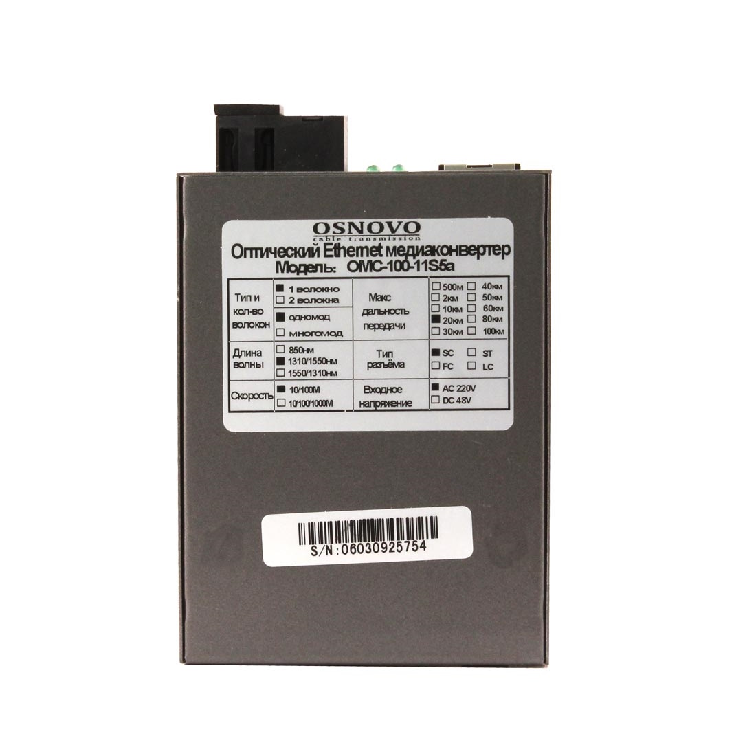 Оптический Fast Ethernet медиаконвертер OSNOVO OMC-100-11S5a