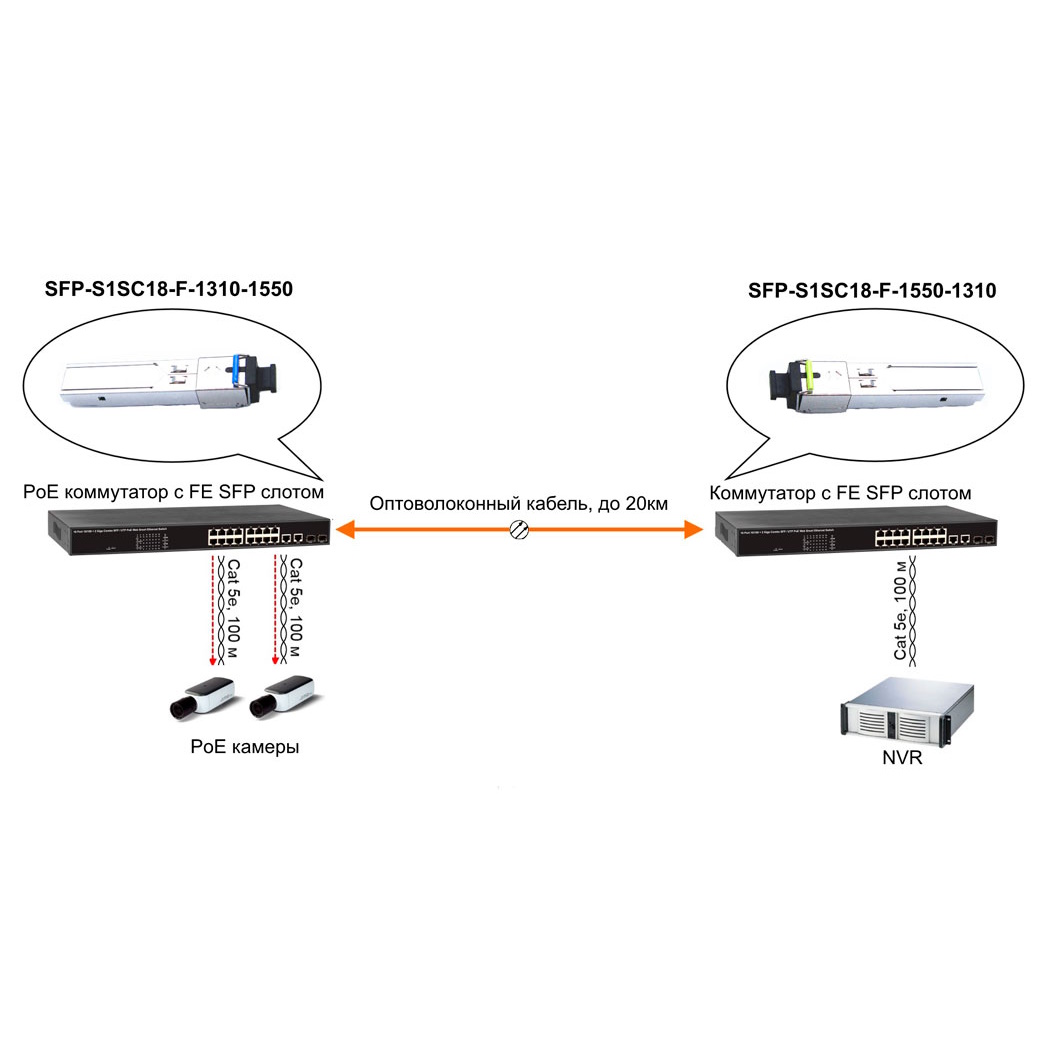 Оптический SFP модуль OSNOVO SFP-S1SC18-F-1550-1310