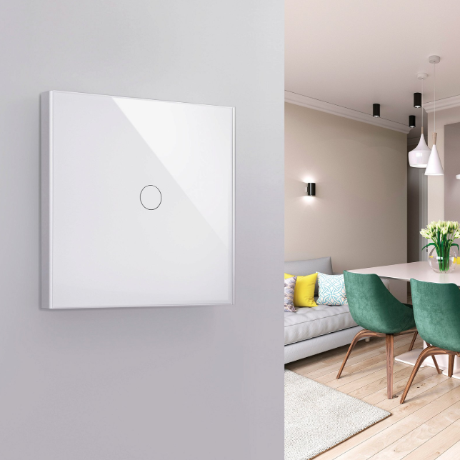 Запускает любой сценарий одним касанием. Например, без использования телефона перекрывает воду в дома, включает или выключает свет во всей квартире. Удобно крепится и не привязана к штатной проводке. Если нужно, вы в любой момент перемещайте панель управления в удобное место.