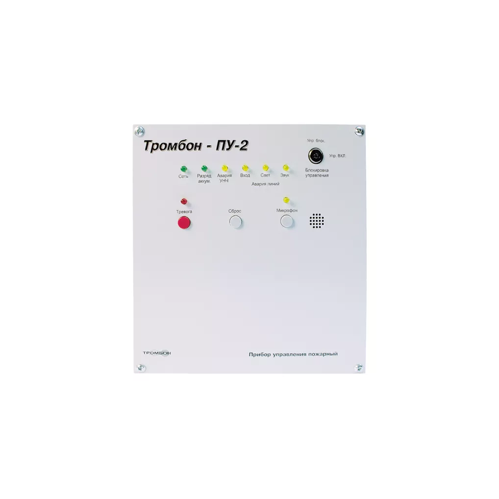 Тромбон ПУ-2 Прибор управления тех. средствами оповещения. Прибор предназначен для построения систем оповещения и управления эвакуацией 1, 2 и 3 типов. Прибор-моноблок, представляет собой полноценную СОУЭ,собранную в одном блоке.