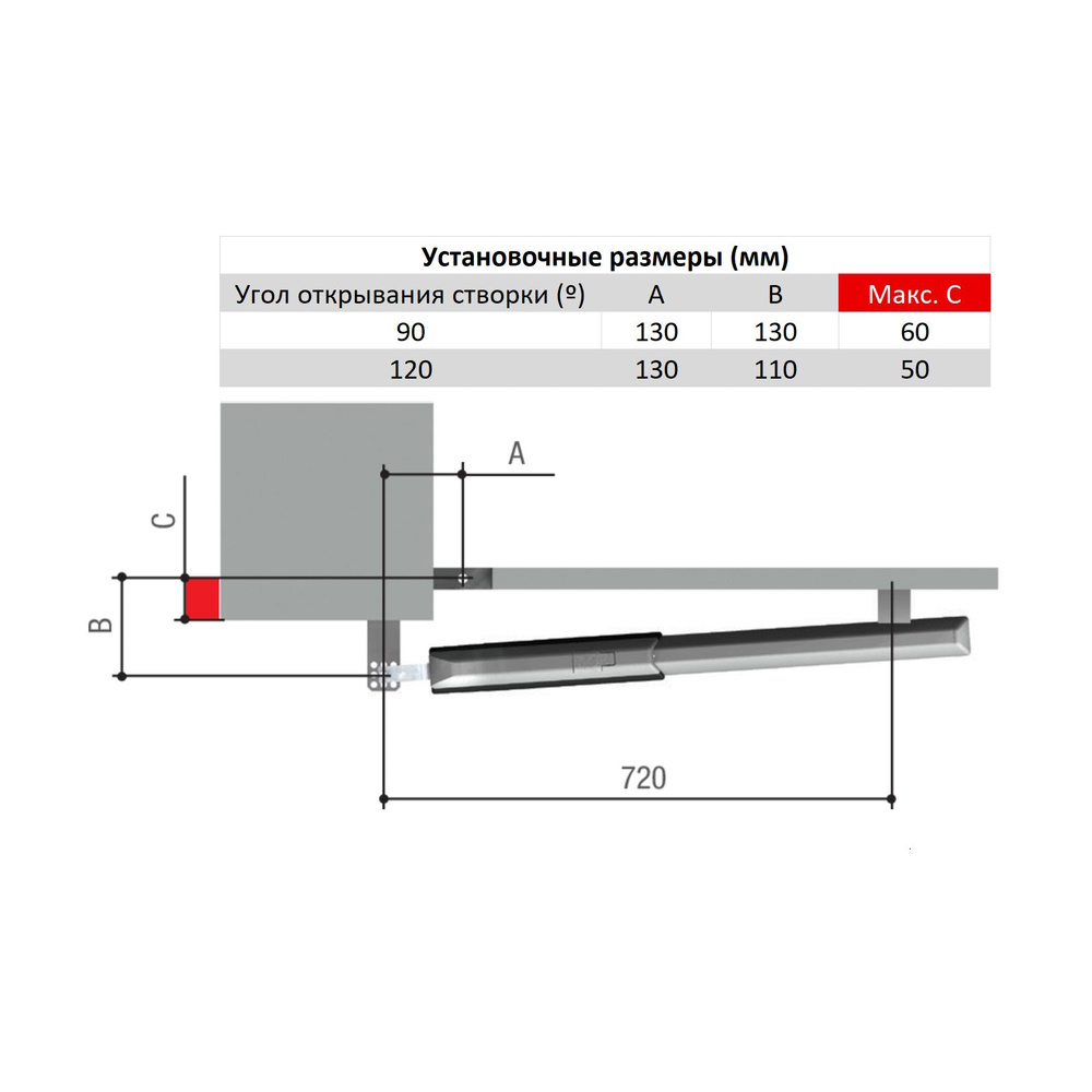 Макс. значение «С» (мм) 60