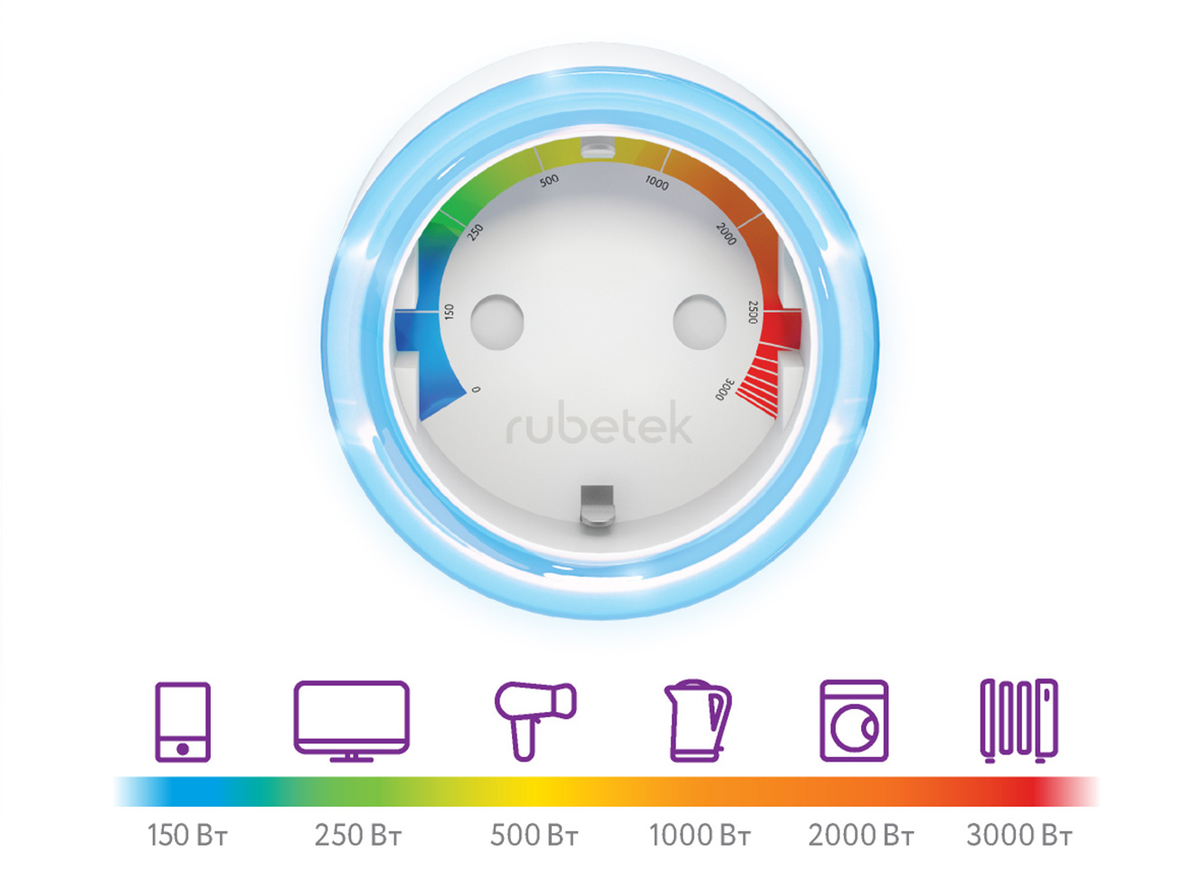 Внимание: данная розетка может работать без центра управления Rubetek.