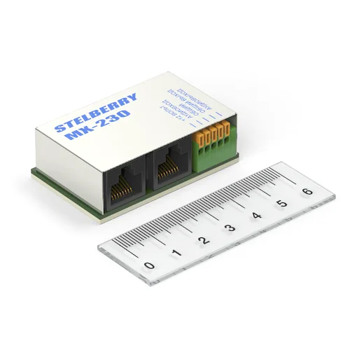 Проходной PoE-сплиттер STELBERRY MX-230 оснащён двумя разъёмами RJ-45, каждый из которых может быть, как входом, так и выходом.