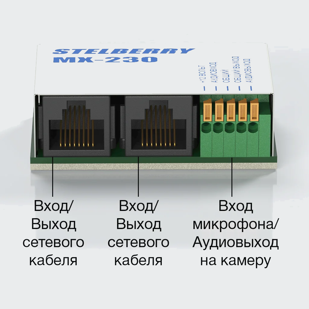 Проходной PoE-сплиттер STELBERRY MX-230 является очень удобным и универсальным решением для питания активных микрофонов от PoE питания IP-камер.
