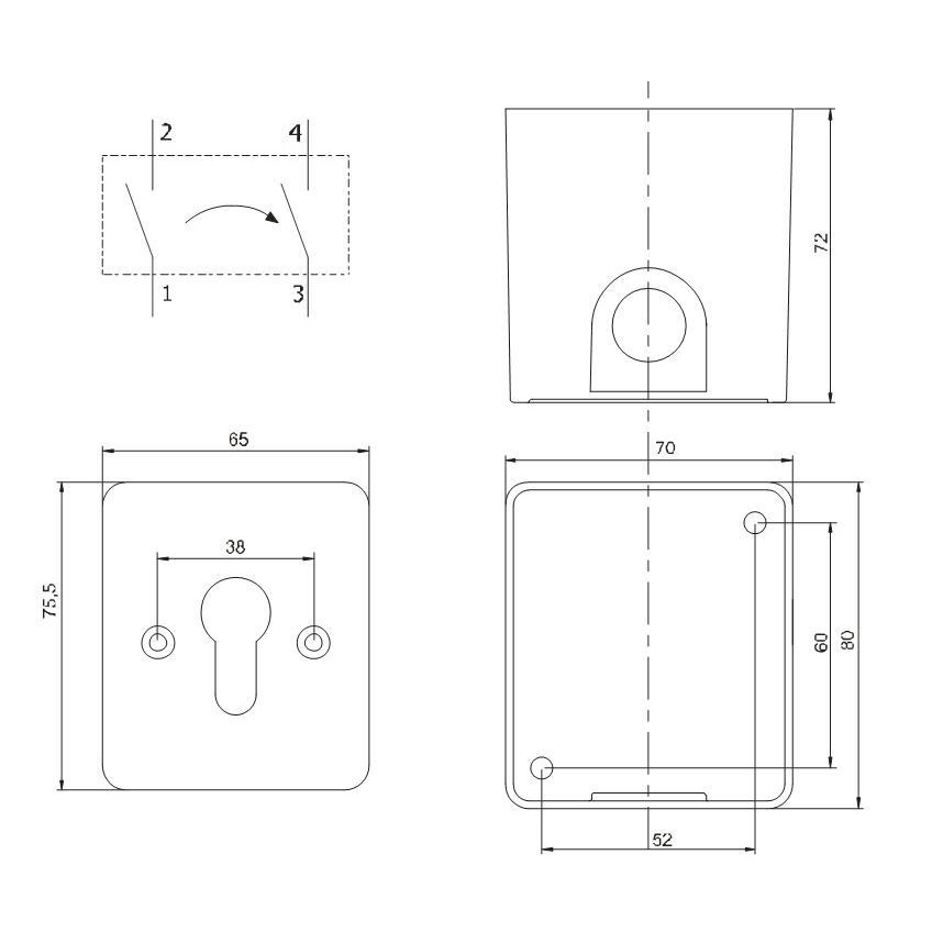 ST-ES120 также имеет 2 группы контактов (ОБЩ, НР (или НЗ)), одна из которых предназначена для управления замком, а вторая может использоваться для сигнализации срабатывания данного устройства. Применение индивидуальных ключей для управления ST-ES120 обеспечивает высокий уровень безопасности